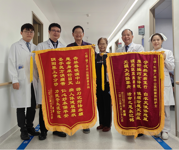 近日,小妲己直播app 普通外科收到了两面“特别”的锦旗,锦旗上印着患者家属亲自书写的诗歌,字里行间表达了对科室医护人员的赞美和感谢。