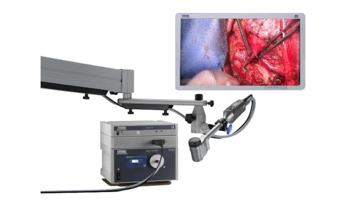 3D外视镜系统为显微外科手术及开放手术提供了一种3D可视化解决方案,使术者的双眼能够不再局限于手术显微镜的目镜端。手术团队成员可通过显示屏同步观看到术野画面。其核心优势包括:更小,更轻,使用更加灵活,更好的团队协作。3D外视镜是专为显微外科手术而研发的,除此以外,3D外视镜亦可应用于传统开放手术。而3D外视镜这种兼具显微外科及传统开放手术的特点正好适合耳鼻咽喉头颈外科手术。3D外视镜具备无极变焦及对焦功能,整合了照明及视野方向调整旋钮,工作距离20-50cm。放大倍数8-30倍。配备可移动机械臂,可实现3D外视镜在显微外科手术及开放手术中的快速定位。3D外视镜对狭窄术腔深部的放大及3D还原,可以有效解决高年资医师的老花问题,使手术经验丰富的高年资医师获得一副年轻犀利的“眼睛”,如虎添翼。