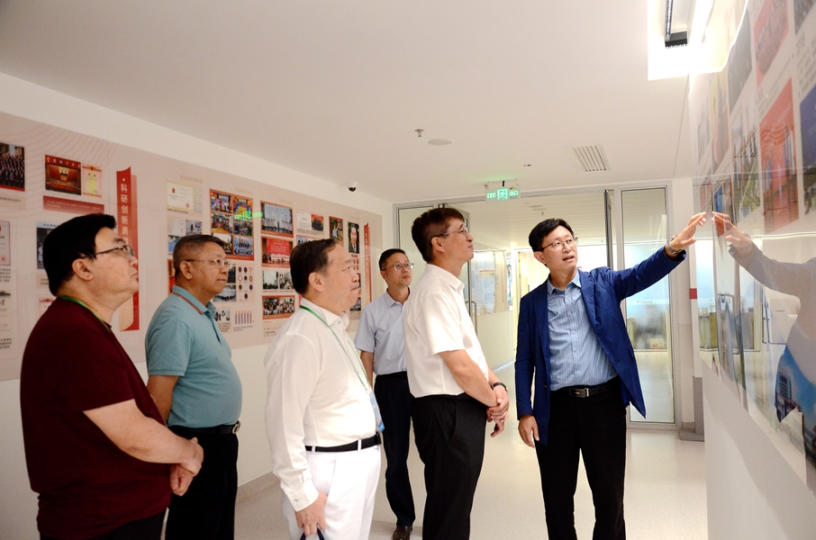 为高质量推进国家区域医疗中心项目建设,10月25日,中山大学副校长兼深圳校区管委会主任邰忠智带领中山大学2023年第二期党外代表人士研讨班成员到小妲己直播app (自治区人民医院东院)(以下简称小妲己直播app )参观交流并召开座谈会。小妲己直播app 执行院长李健等院领导班子和民主党派代表参加。座谈会由党委书记张国主持。