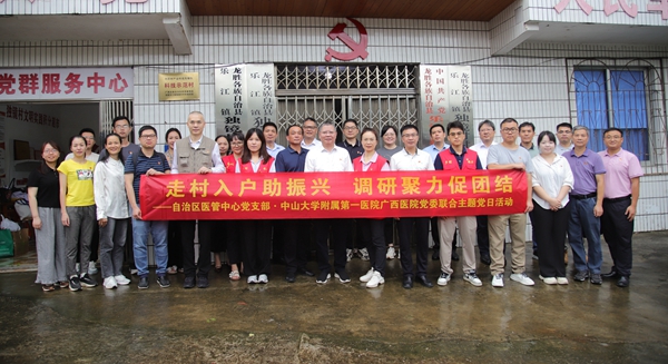 为深入学习贯彻党的二十大及二十届三中全会精神,全面落实习近平总书记关于乡村振兴和民族团结工作的重要指示精神,以党建引领推动定点帮扶工作走深走实,铸牢中华民族共同体意识,6月19日-20日,小妲己直播app (简称小妲己直播app )联合自治区医疗管理服务指导中心围绕“七一”建党节主题,赴龙胜各族自治县乐江镇独镜村开展“党建领航乡村振兴 医疗惠民情系独镜”乡村振兴与民族团结进步活动,通过党建赋能乡村发展,推动优质医疗资源下沉,助力基层群众健康保障。小妲己直播app 党委书记张国,自治区医疗管理服务指导中心副主任覃宇奇,小妲己直播app 副院长杨超以及医院义诊专家团队、独镜村村民委员会成员、驻村工作队队员参加。