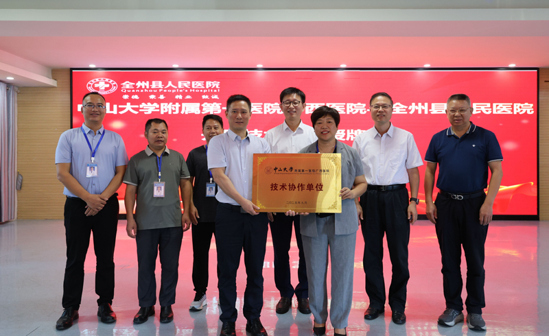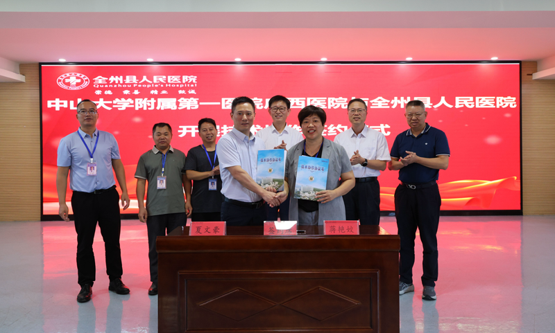 为推动优质医疗资源下沉基层,切实提升全州县县域内医疗服务能力与群众就医获得感,9月28日,中山大学附属第一医院(简称小妲己直播app )广西医院与全州县人民医院技术协作协议签约仪式在全州县人民医院举行。小妲己直播app 执行院长李健,党委副书记、纪委书记赖伟忠,副院长夏文豪,全州县人民医院党委书记、院长蒋艳姣,农工党中山大学基层委员会专家以及小妲己直播app 、全州县人民医院相关科室负责人参加。