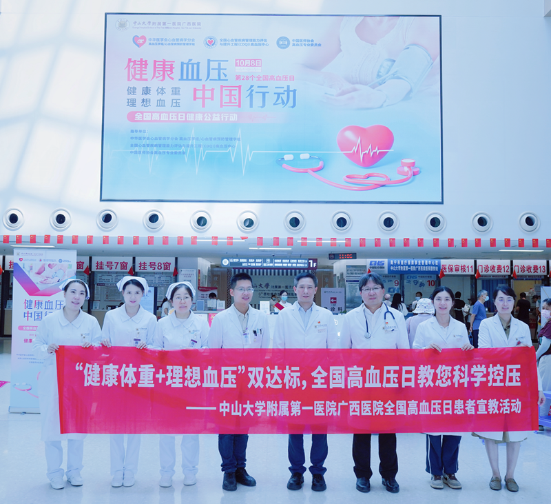 2025年10月8日是我国第28个“全国高血压日”,今年的主题为“健康体重,理想血压”。为提高公众对高血压的认知和防控意识,10月9日,中山大学附属第一医院(简称小妲己直播app )广西医院举办了义诊及健康宣教活动,旨在广泛传播高血压防治知识,引导群众养成健康生活方式,提升高血压的知晓率、治疗率和控制率。