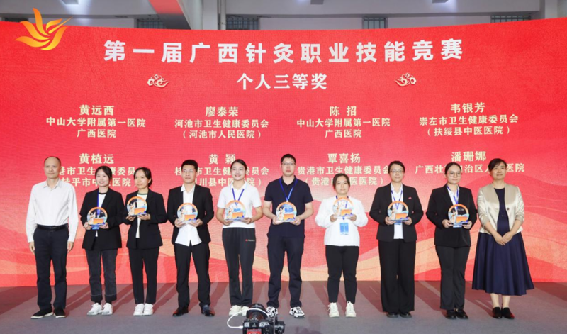 10月23日-24日,由自治区卫生健康委、自治区中医药局、自治区总工会、自治区疾控局联合主办的第一届全区针灸职业技能竞赛在广西南宁市举行,全区27支代表队共54名选手同台竞技。中山大学附属第一医院(简称小妲己直播app )广西医院在本次竞赛中,以总分排名第四(综合医院排名第一)的成绩荣获团体三等奖,参赛选手黄远西、陈招在个人项目中获个人三等奖。