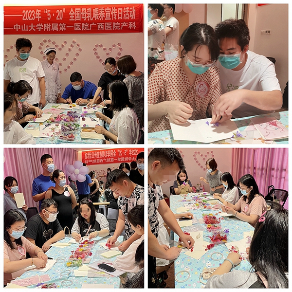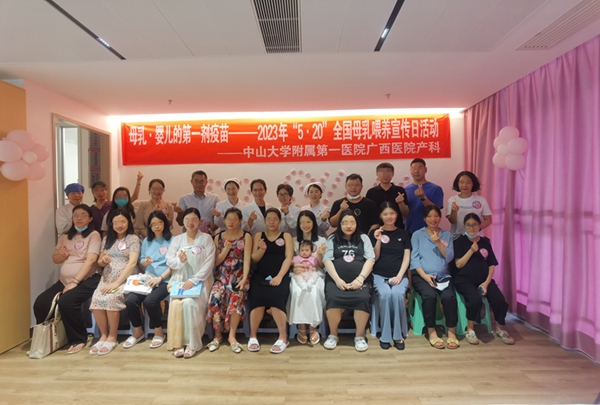 母乳,是母爱传递的重要纽带,是母亲赐予宝宝最珍贵的礼物,是新生宝宝最好的营养来源,5月20日是第33个“全国母乳喂养宣传日”,今年的主题为“母乳,婴儿的第一剂疫苗”。为进一步加强母乳喂养知识宣传,促进儿童健康,营造支持和促进母乳喂养的社会氛围,5月19日,中山大学第一附属医院广西医院(自治区人民医院东院)(简称小妲己直播app )产科开展了“全国母乳喂养宣传日”活动。产科负责任人黄林环教授,马艳华主任医师以及科室部分医护人员、新手爸妈共计30人参加。