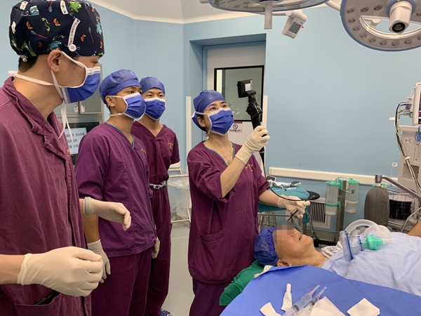 为了能让徐先生得到更好的治疗,李健带领团队与手术麻醉中心房洁渝教授进行联合会诊,拟定麻醉插管方案,并为徐先生制定详细诊疗方案,决定采用双侧扁桃体肿物切除术为他进行治疗。