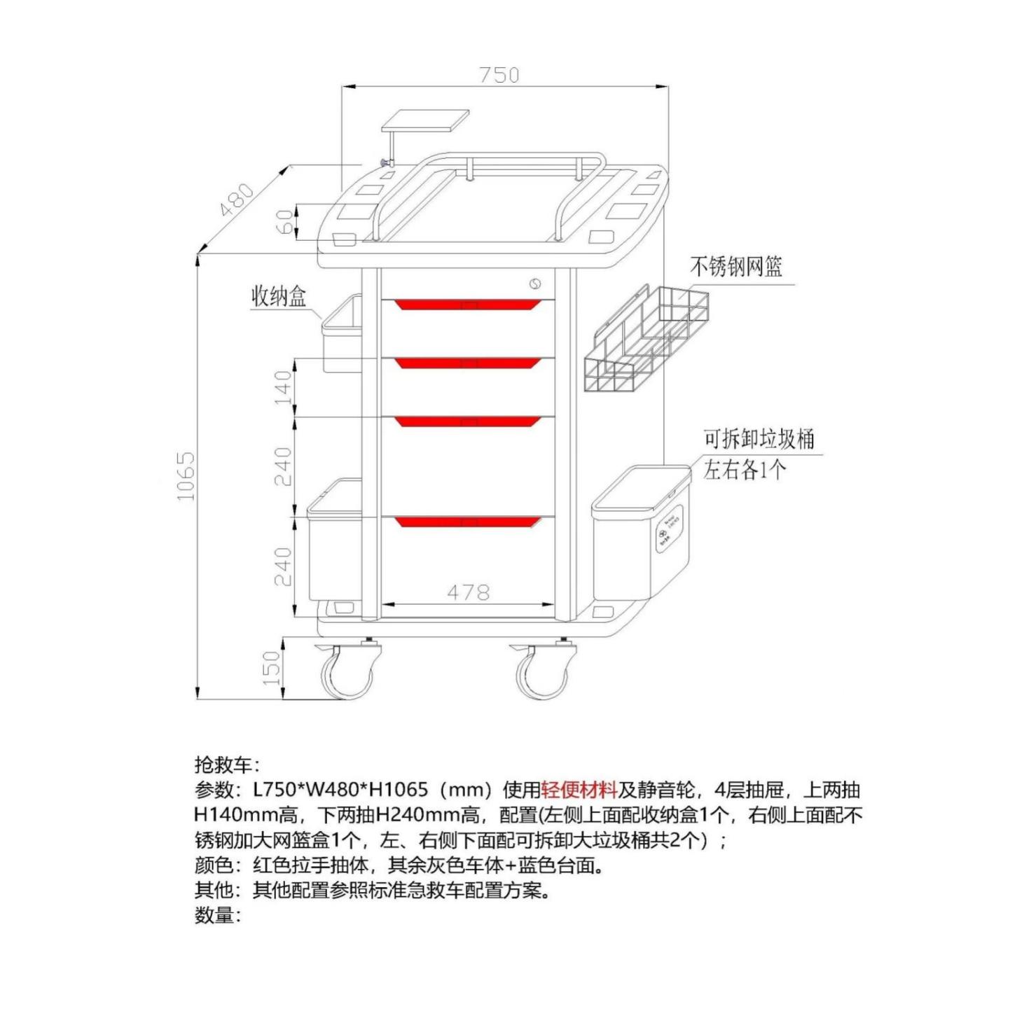 肾内科 | 抢救车(新开科室必备) | 台/套 | 2 | 0.60 | 1.20 |