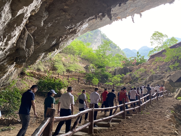 在棕榈洞的外面,就是浩坤村史馆,这是在浩坤小学原址上建设的场馆,记录了浩坤村的悠久历史,一幅幅珍贵的历史图景、一个个鲜活的典型事迹,今昔对比,沧桑巨变,让大家实地感受到脱贫攻坚给浩坤村带来的翻天覆地的变化,也感受到了一代代浩坤人民为决战决胜小康而奋力突围、奋力拼搏的精神。